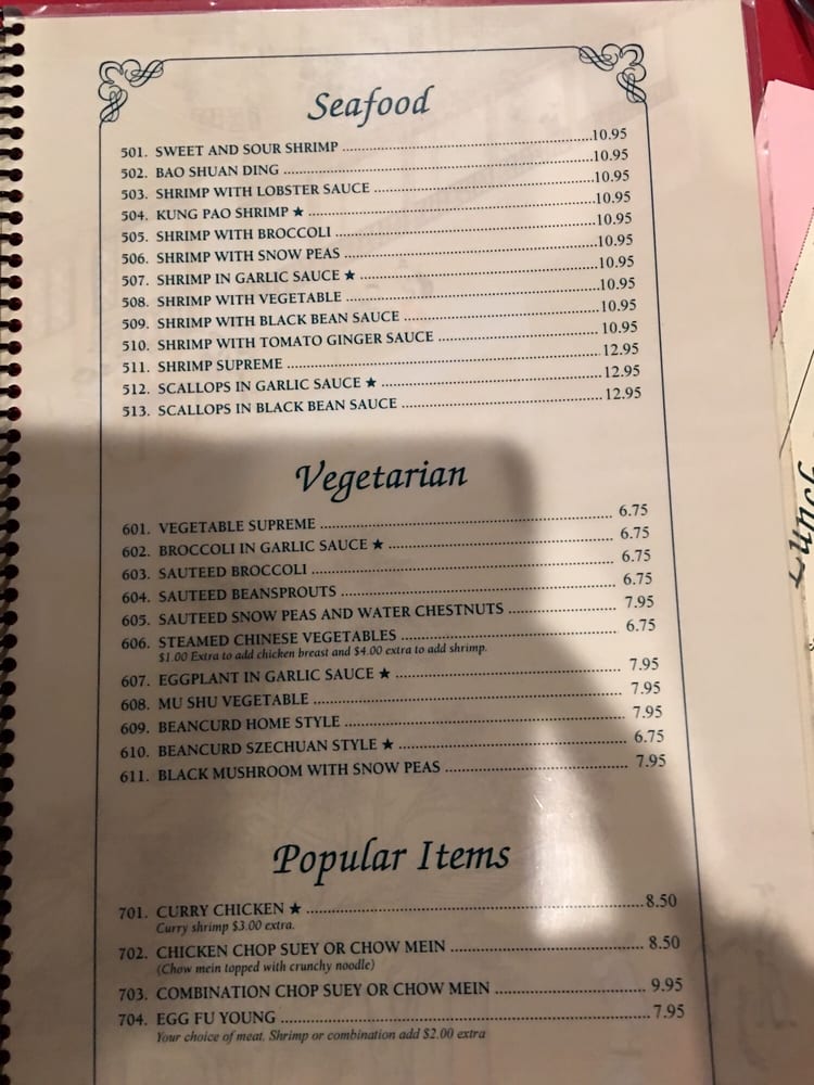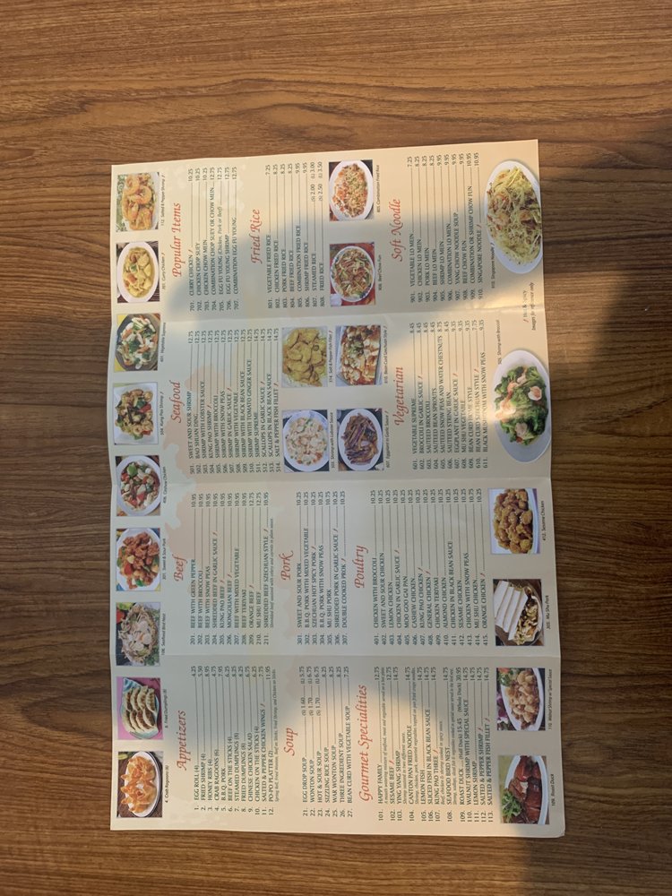 Includes egg roll, fried rice, steamed, or noodles. Pork, chicken, or shrimp.